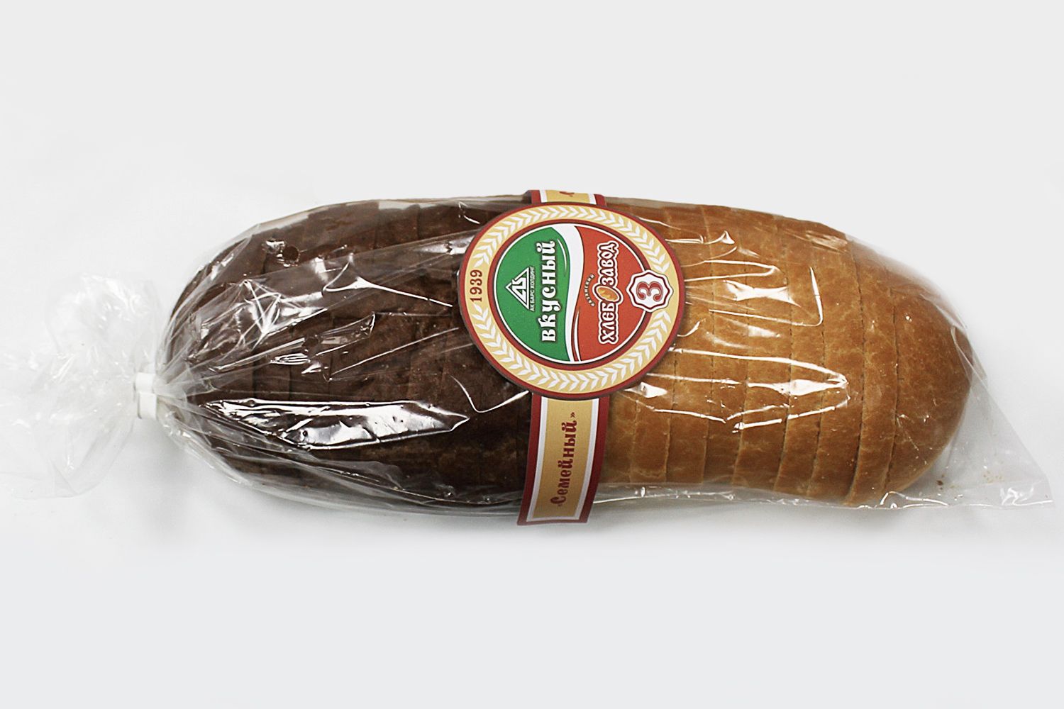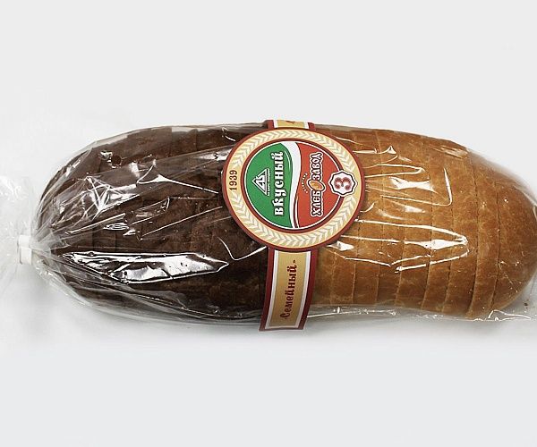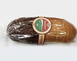 Описание: Одна половина хлеба из пшеничный муки и молочной сыворотки, а вторая половина темная содержит полуфабрикат заварной, муку обдирную, солод ячменный