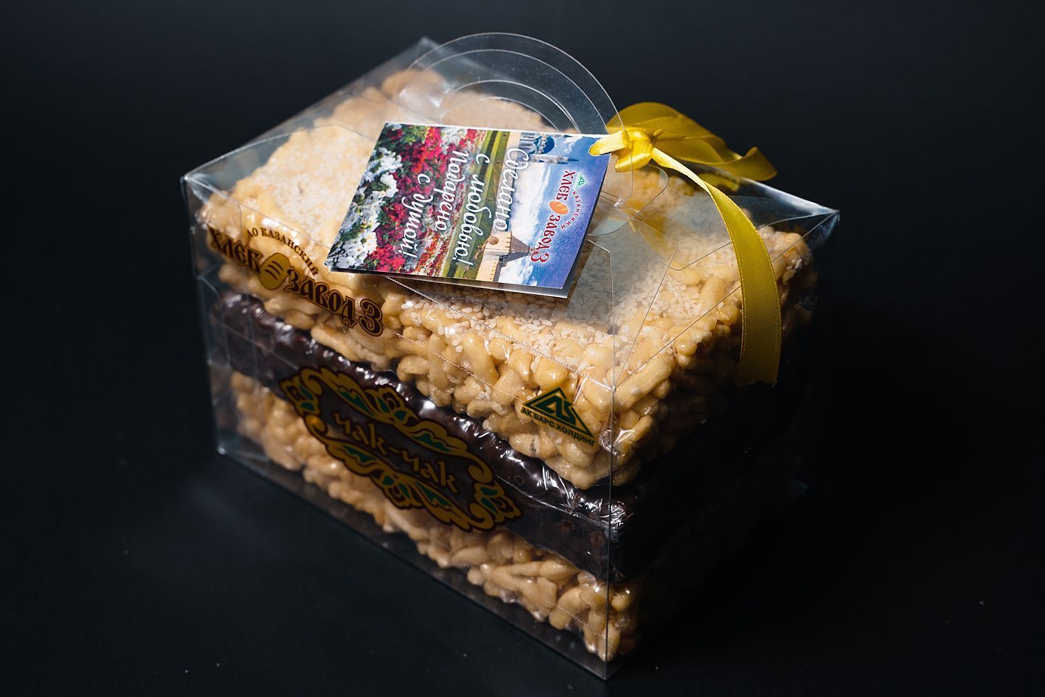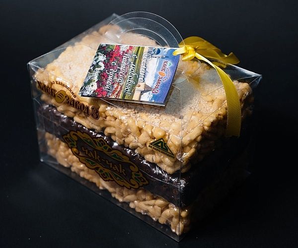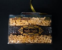 0,75 кг - 3 вида чак-чака: классический, с кунжутом, с кокосом 1,0 кг - 3 вида чак-чака: классический, с кунжутом, глазированный.