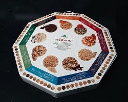 9 видов чак-чака в одной коробке: классический, глазированный, декорированный, с маком, с кунжутом, с кокосом, с воздушным рисом, с грецким орехом, с курагой.