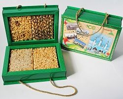 string(207) "4 вида чак-чака в одной коробке: классический, с кунжутом, декорированный кондитерской глазурью, с грецким орехом."