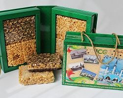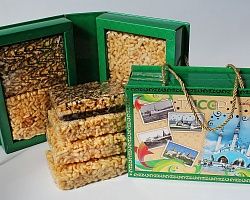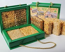 4 вида чак-чака в одной коробке: классический, с кунжутом, декорированный кондитерской глазурью, с грецким орехом.