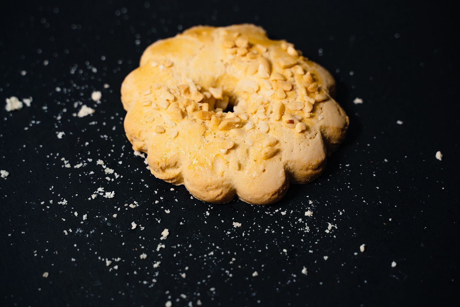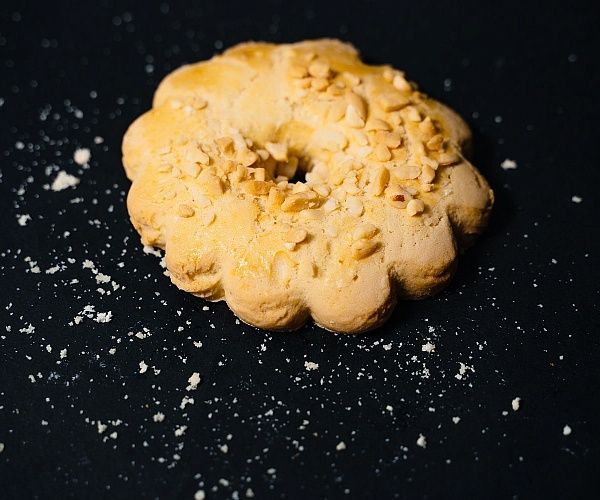 Мука пшеничная хлебопекарная высший сорт, яйца куриные пищевые, соль поваренная пищевая, сахар-песок, маргарин, ваниль», разрыхлители (аммоний углекислый, натрий двууглекислый), ядро ореха (арахис).