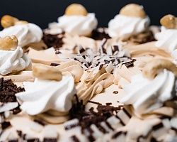 string(454) "Слои нежного бисквита с какао-порошком прослоены кремом растительно-жировым, с продуктом молокосодержащим сгущенным с сахаром "Варенка". Поверхность торта покрыта этим же кремом, украшена шоколадной глазурью, шоколадной соломкой и фундуком."