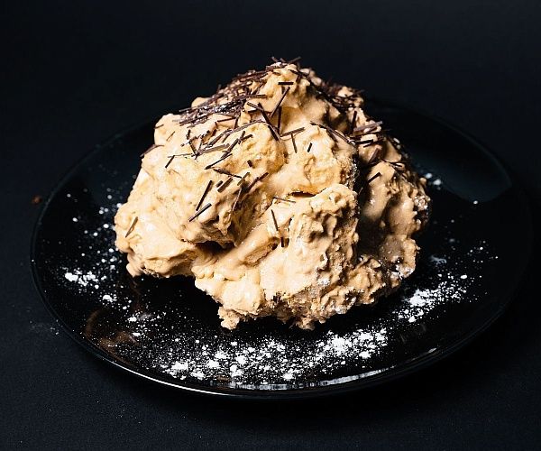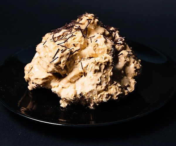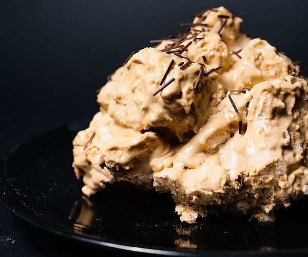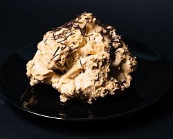 Безе, крем-суфле с "Варенкой", арахис. Поверхность: кондитерская глазурь.