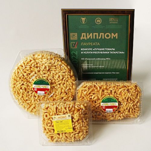 Сухари "Ванильные" , Лапша Домашняя, Национальное кондитерское изделие "Чак -чак", завоевали высшую награду в конкурсе "Лучшие товары и услуги Республики Татарстан" стали Лауреатом "100 лучших товаров России".