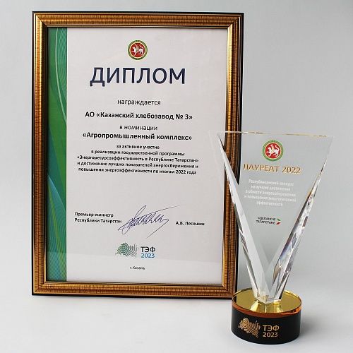 За активное участие в реализации государственной программы Энергоресурсоэффективность в Республике Татарстан. И достижения лучших показателей энергосбережения и повышения энергоэффективности по итогам 2022г.